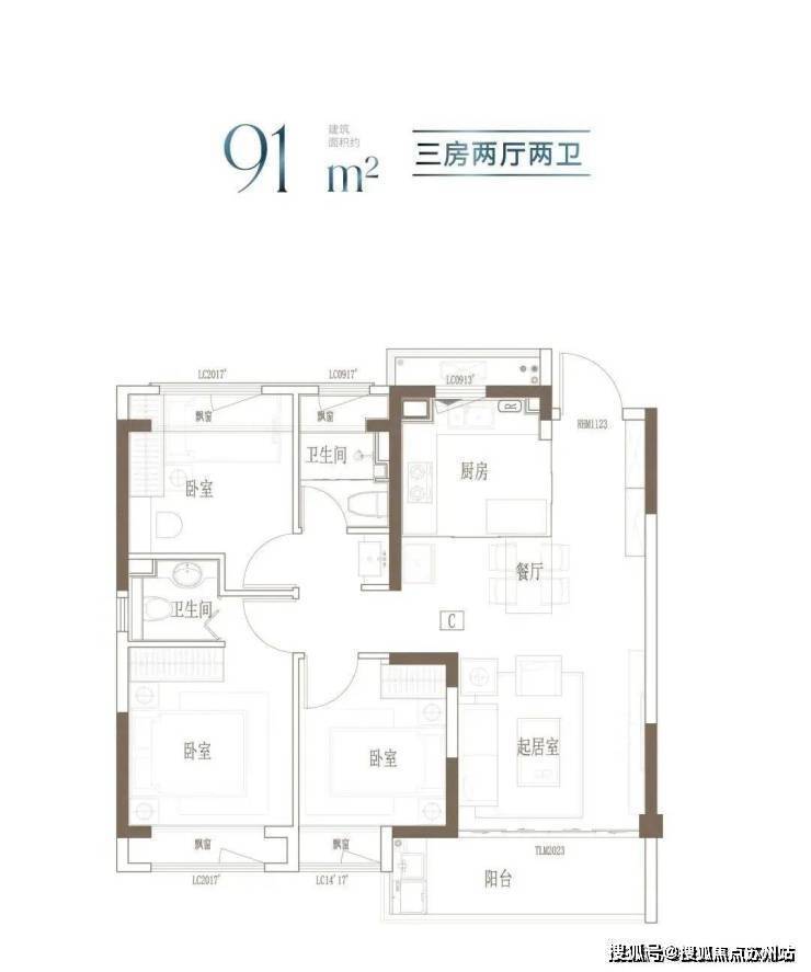 建面约91m²的这个户型,3开间朝南,全屋阳光充足;L型厨房转角移门设计,最大化空间视野;四飘窗设计,通透空间享受;动静分区,亲密有度;套房式主卧,容纳私谧生活点滴。