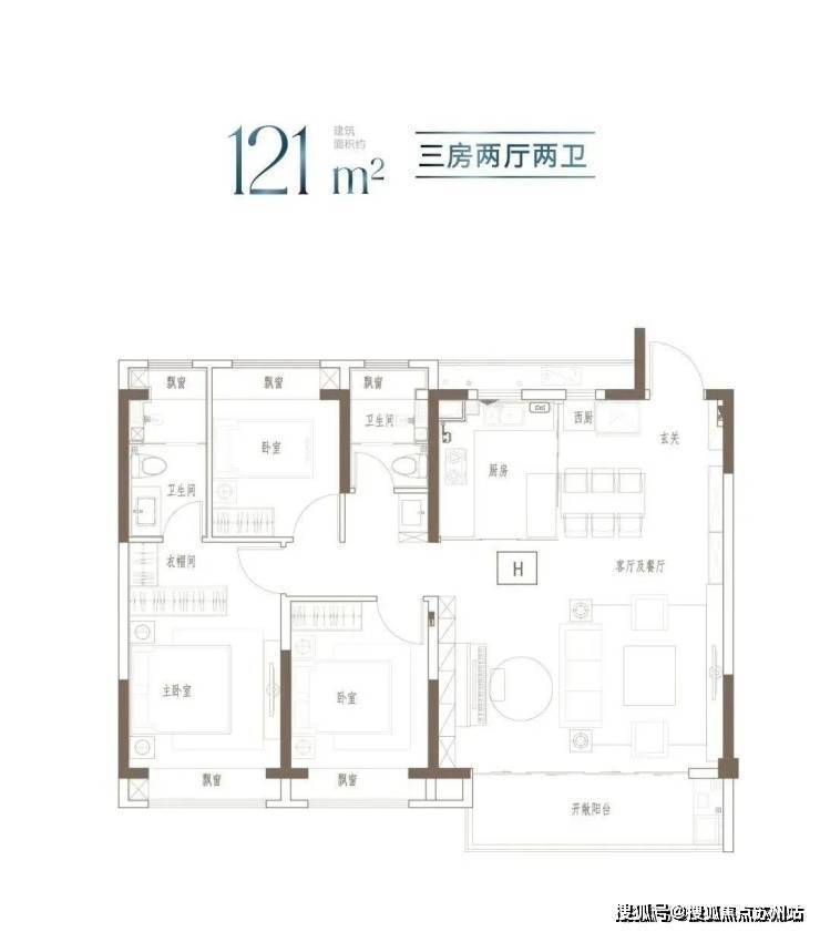 建面约100m²的阳光三房,同等面积更多功能;宽幅南向观景阳台,把居住变成风景;步入式衣帽间,给予生活更多从容。