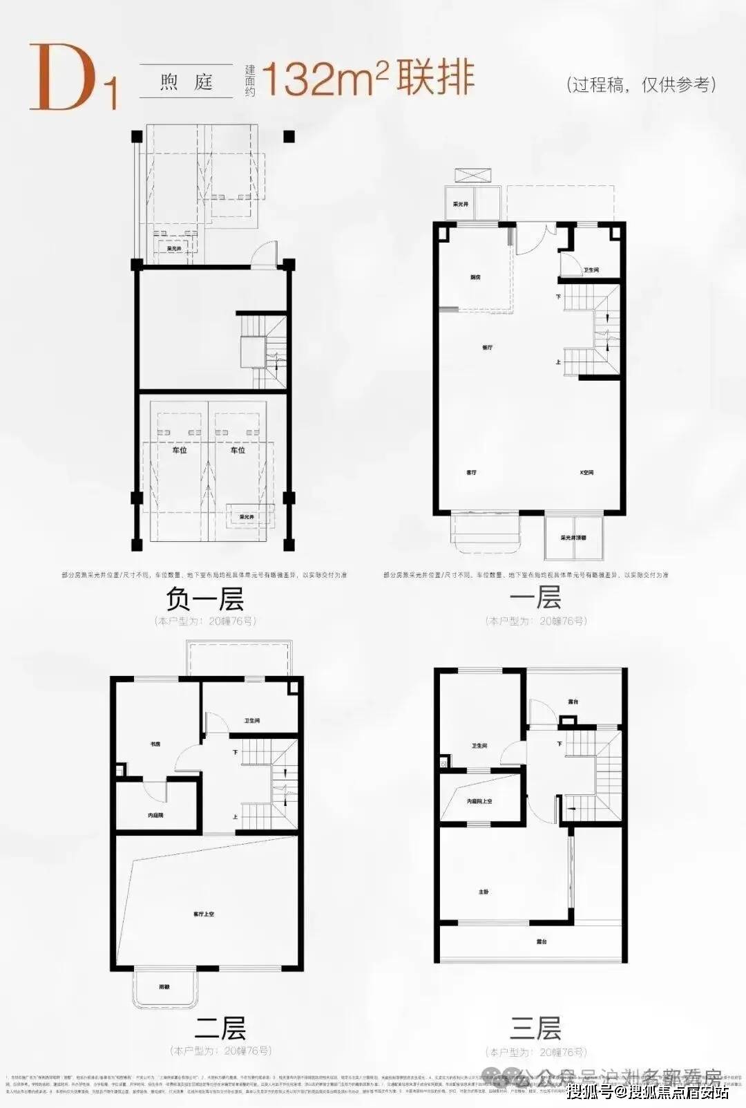 项目首开主推建面约132-195㎡联排别墅,一院一厅间的无界私院,拥有前庭后院+超大挑空+南北双星空露台+室内庭院