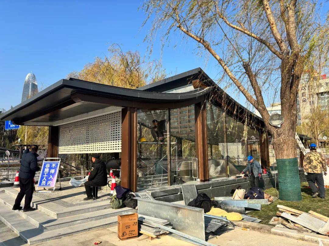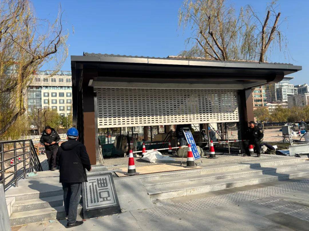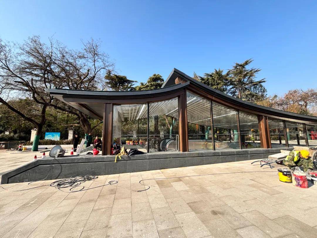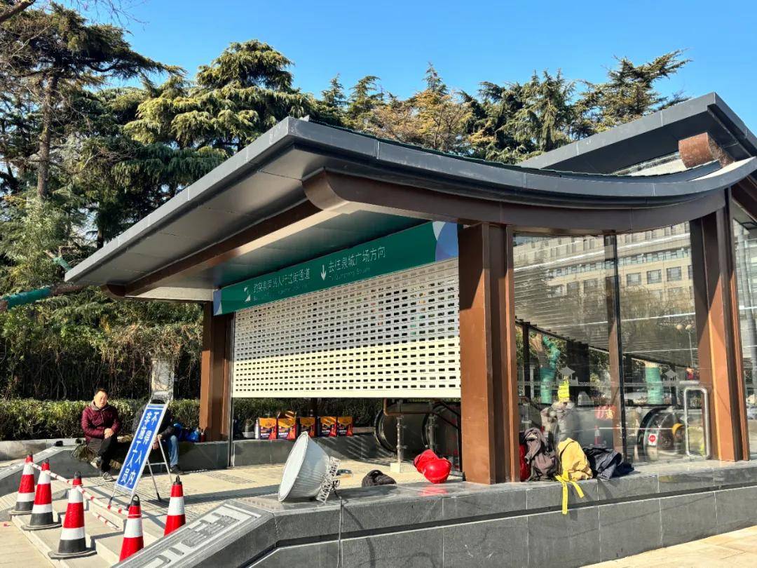 根据楼友“怪兽”12月29日提供的现场画面,这两处出入口的建筑工程已大体完工,正在进行最后的收尾工作。现场仍有不少工作人员进行施工,出入口的卷帘门半关闭着,并有安保人员看守,除施工人员外,行人暂时不得入内。