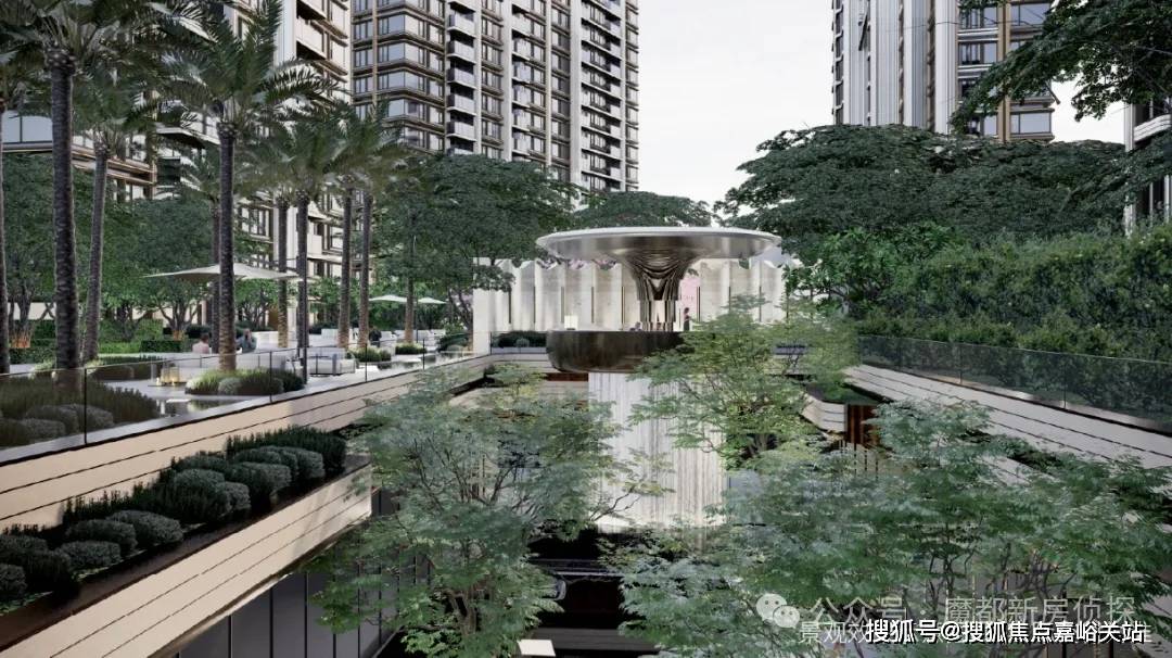 ,保利天奕采用了内外一体化开发手法,主动向绿地退让10米,在城市与社区之间,打造一条半开放的公园界面,柔化了社区和城市的边界。这次保利非常巧思的一个点在于,它把目光放置全球具有度假感的花园场景,打造出米勒花园、巴厘岛岛屿水院、红酒派对花园、森林浴花园以及毕加索儿童乐园五大花园。