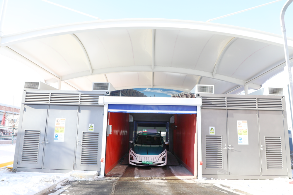 在充换电站现场,新能源出租车有序驶入,扫码、换电、驶离一气呵成,平均耗时不足2分钟。为抵御严寒,站内加装保温卷帘门,有效维持棚内温度;针对冬季电池易冻难题,专门配备加热风炮,快速解冻电池,大幅缩短等待时间,实现“即到即换”。