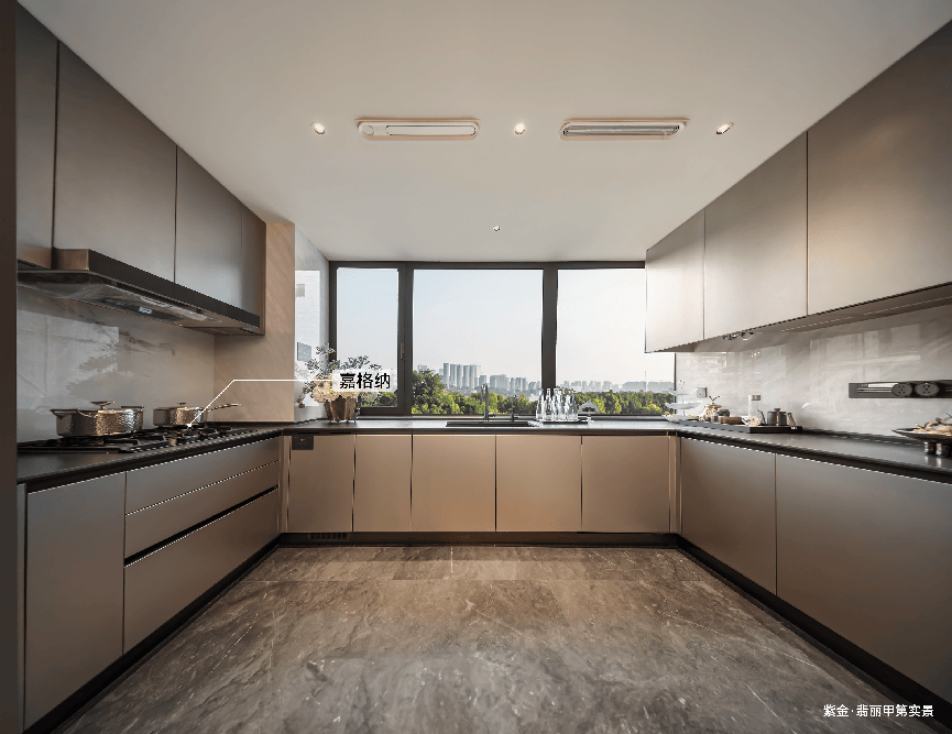 房子里的配置,只能用“奢侈”来形容。精装标准每平米超过6000元,请了梁志天、郑忠、吴滨三位国际设计大师分别为不同户型做设计。厨房配的是德国嘉格纳的顶级厨电,卫浴用的是德国当代和瑞士劳芬,这些品牌和上海半岛酒店用的是同款。中央空调、地暖、新风也全是国际一线品牌,满足了精装大平层对品质的极致追求。