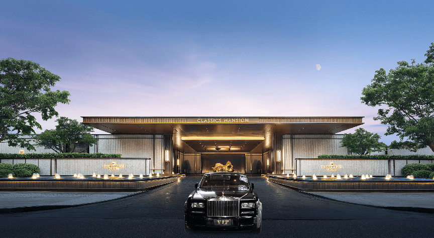 归家的仪式感从大门就开始了。近6.3米高的门头、复刻半岛酒店的“车马院”设计,让你每次回家都像五星级酒店贵宾落客。连地下车库都精心装修,配有星光顶和豪车专属车位,劳斯莱斯都能轻松停入,彰显了顶豪项目的尊贵气质。