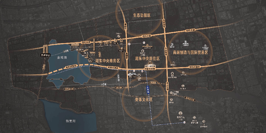 地段是它最硬的底气。紫金·翡丽甲第坐镇园区未来发展的核心——中新合作区,被现代大道、中新大道、星塘街、中环东线这“两横两纵”主干道环绕,去哪都方便,占据了金鸡湖东核心地段。