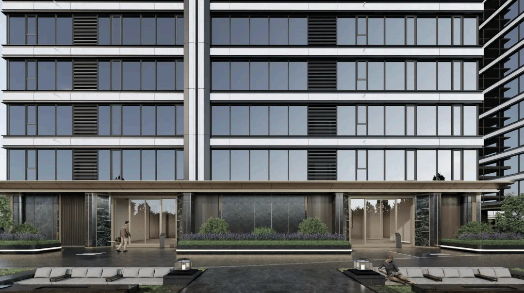 山河颂建筑立面线条采用直线勾勒传承苏式韵味,采用高品质公建化立面,现代风格,选用银白色铝板搭配超白low-E玻璃,在整个苏州都是独一无二极具有昭示性!