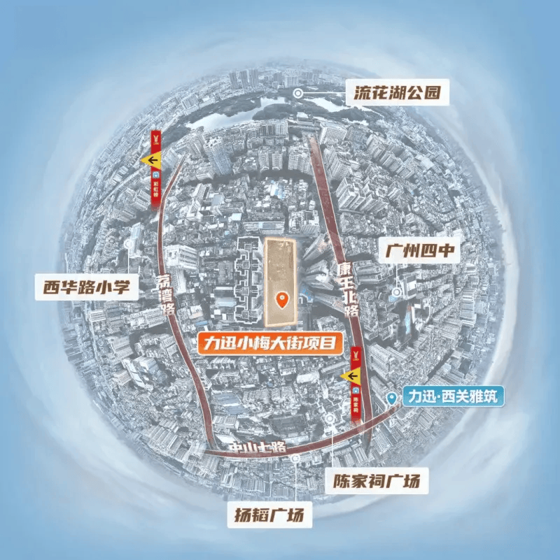 广州的城市轴线,自南越国宫署遗址起,经唐宋市舶司、明清十三行,一路延绵至今日的荔湾湖与陈家祠。这条文化中轴线上,每一寸土地都浸润着历史的回响。而力迅樾公馆所踞的小梅大街,正位于这一轴心的黄金坐标。